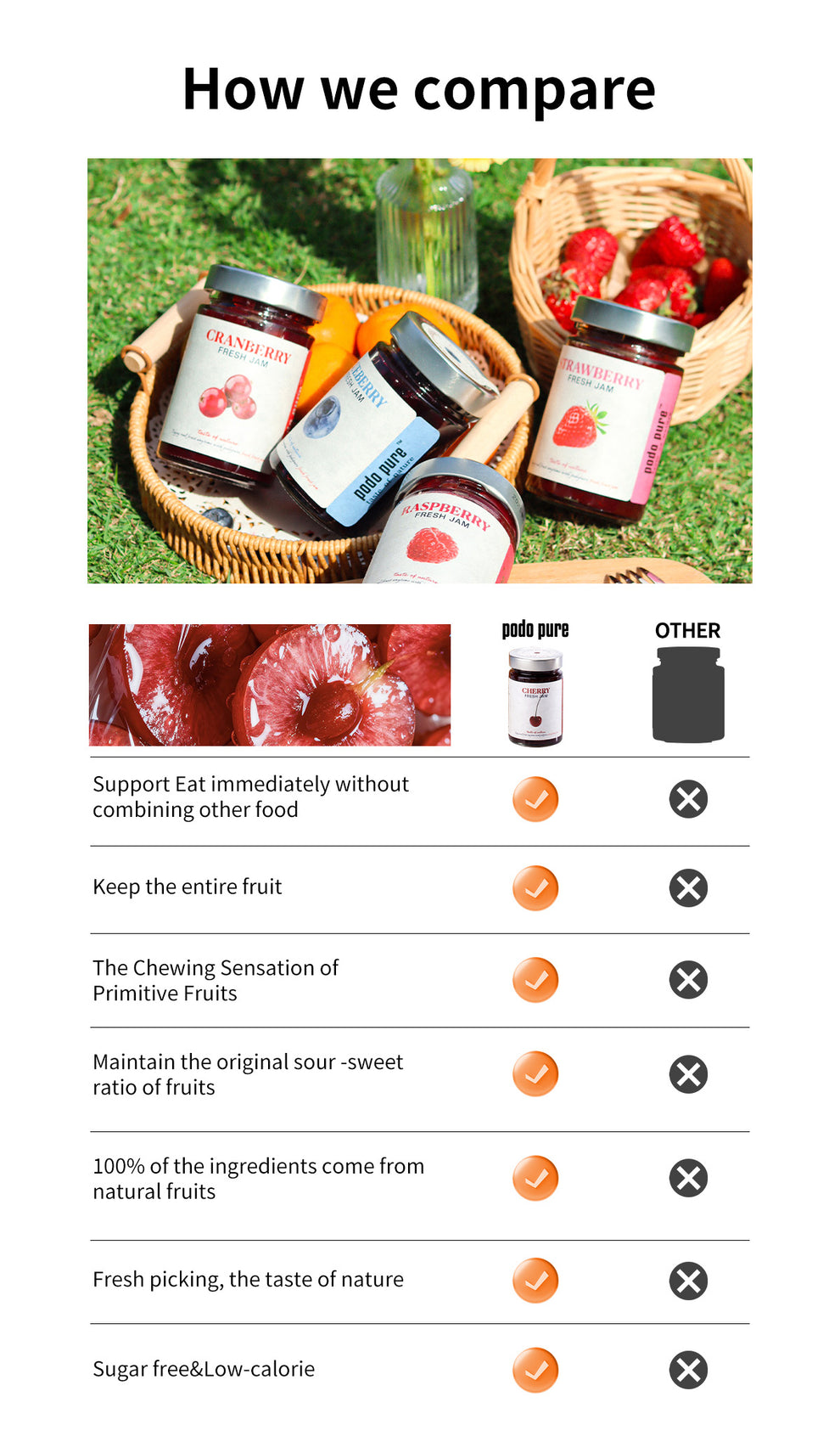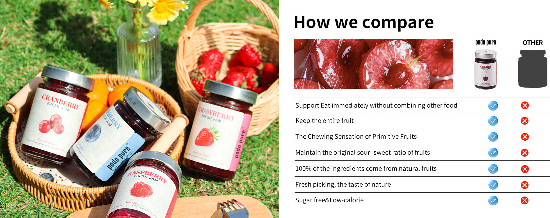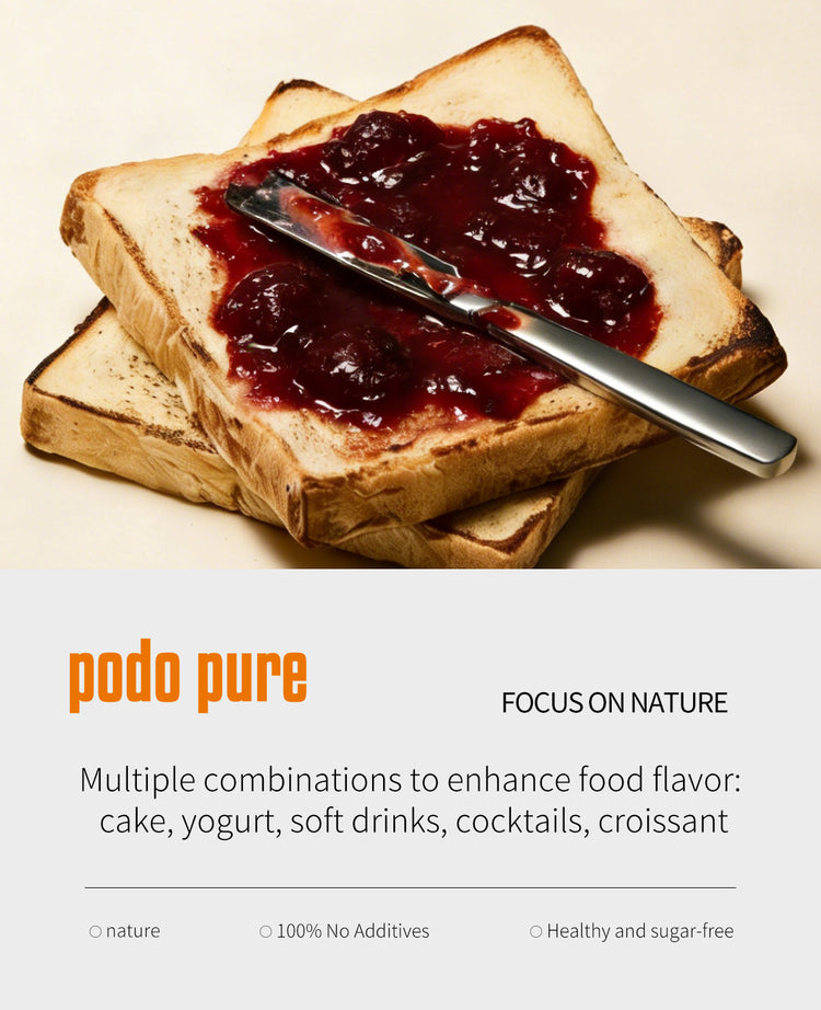 With our own jam factory, we stay true to clean recipes—no sugar stains or unhealthy sweeteners often found in cheap or so-called "sugar-free" jams. At PodoPure, we believe everyone deserves a healthier, more natural choice.