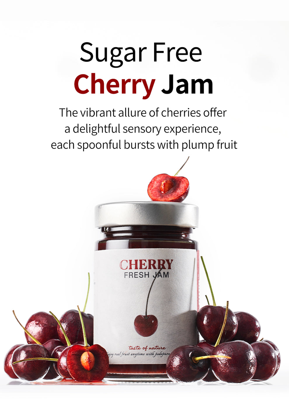 The vibrant allure of cherries comes to life in our sugar-free jam, offering a delightful sensory experience. Each spoonful bursts with plump fruit and sweet juice, delivering an explosion of fruity flavor and gratifying texture. With our sugar-free formula, relish in the sweetness of cherries while embracing the health-conscious journey of guilt-free enjoyment.