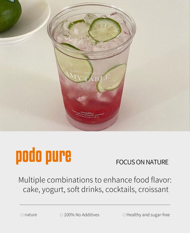 PODO captures the gentle sound of ripe fruit falling to the earth—symbolizing nature’s purest state. At PodoPure, we start with natural foods to help people enjoy the true taste of nature. Our slogan, "Taste of Nature," reflects our commitment to authentic, wholesome flavors.