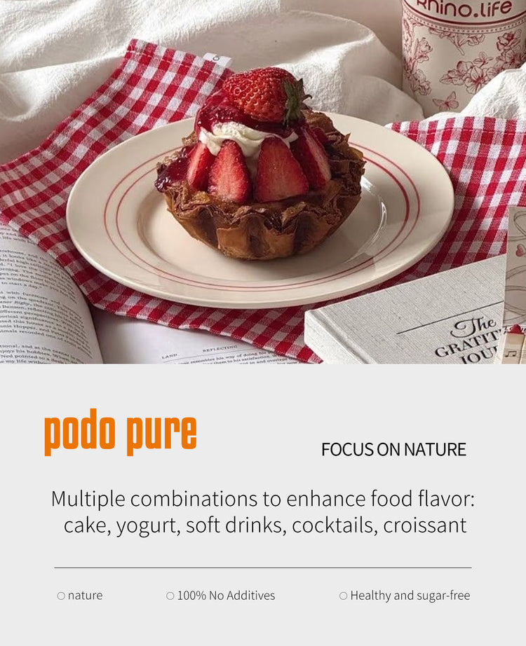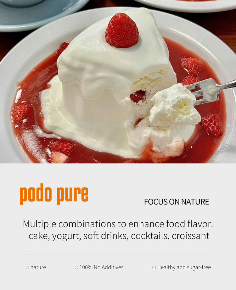 PODO captures the gentle sound of ripe fruit falling to the earth—symbolizing nature’s purest state. At PodoPure, we start with natural foods to help people enjoy the true taste of nature. Our slogan, "Taste of Nature," reflects our commitment to authentic, wholesome flavors.